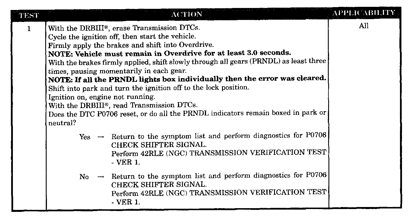 PRNDL FAULT CLEARING PROCEDURE