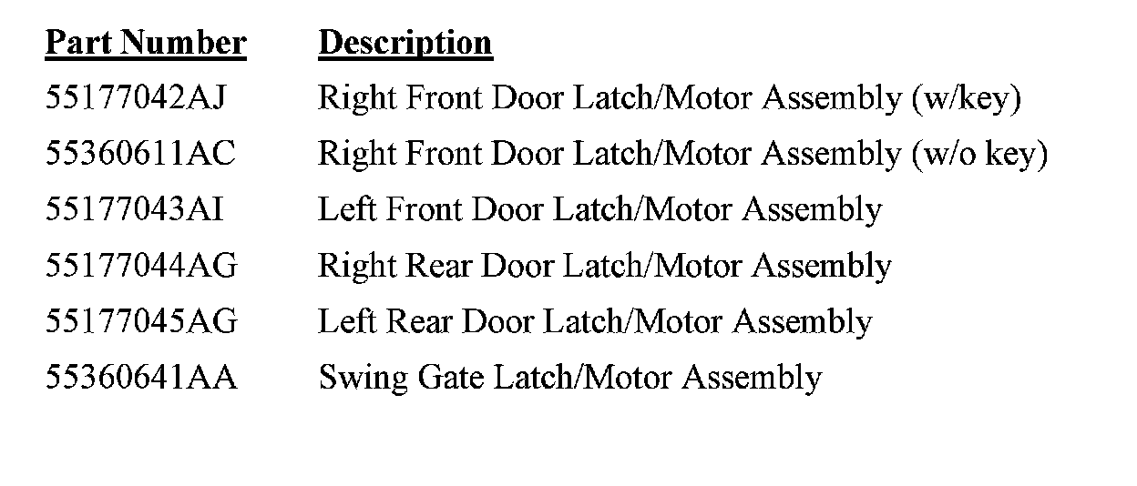 3. If door lock motor replacement is required, all motor/latches must be replaced. Order the appropriate latches as required.