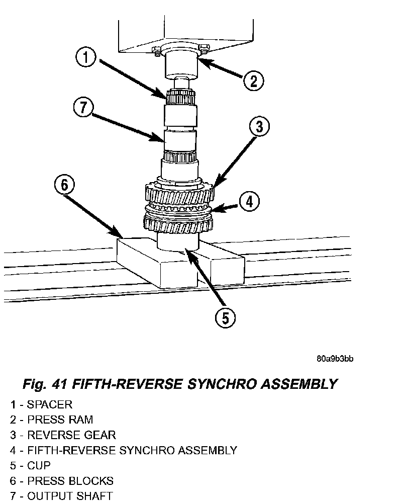 NOTE: The synchro hub is a press fit design. There may be instances where the press is not necessary. As long as there is a snug fit between the hub and the shaft, the hub does not need to be replaced.
