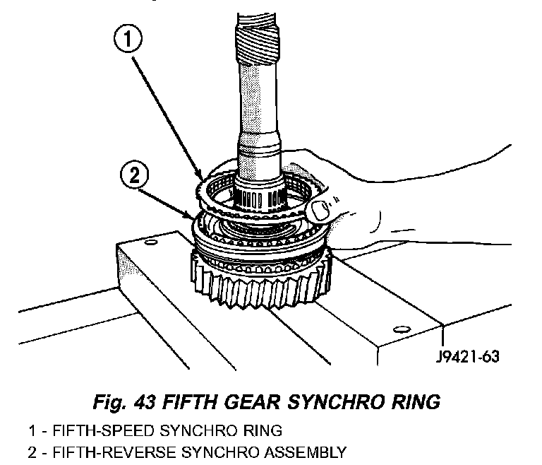 6. Install fifth gear synchro ring in synchro hub and sleeve.