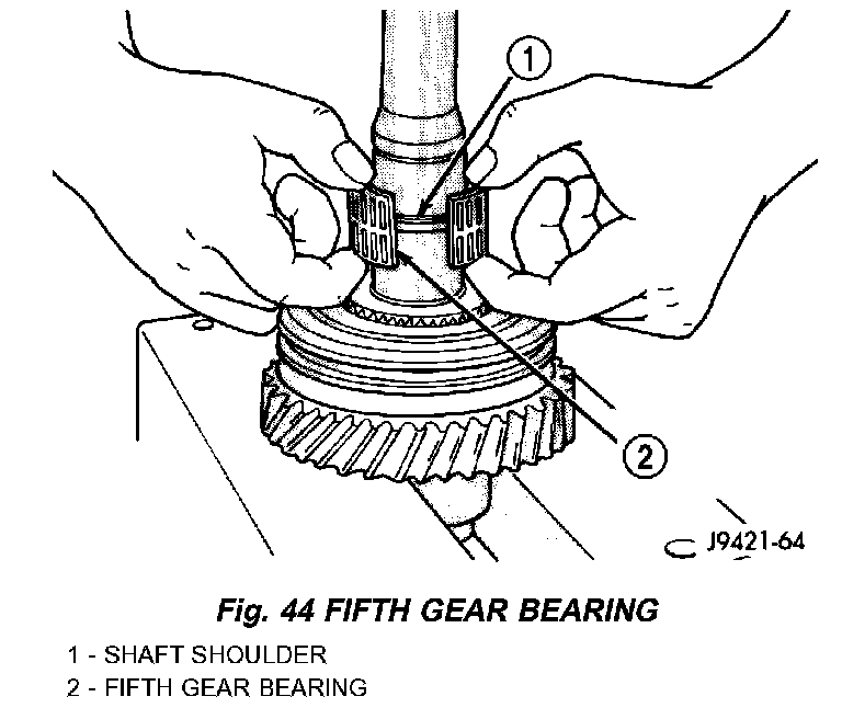 7. Install fifth gear bearing, spreading bearing only enough to clear shoulder on output shaft. Verify bearing is seated.