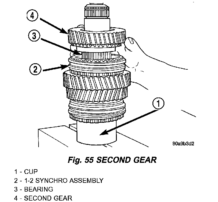 22. Install second gear onto shaft and bearing. Verify second gear is seated on synchro components.