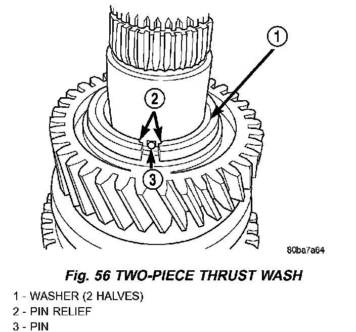 23. Install thrust washer pin to shaft and install two-piece thrust washer. Verify washer halves are seated in shaft groove and pin reliefs are positioned at washer locating pin.