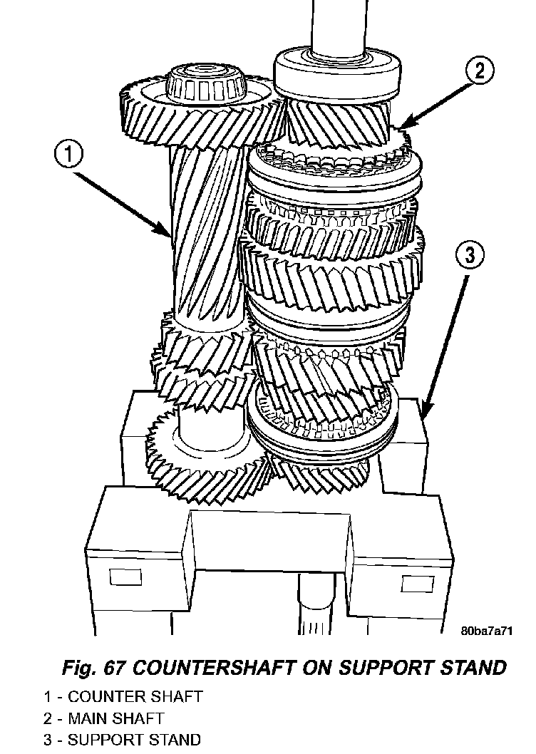 5. Slide countershaft into fixture slot. Verify countershaft and output shaft gears are fully meshed with the mainshaft gears.