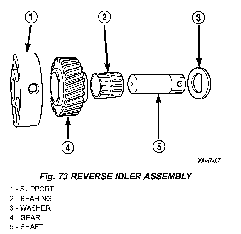 NOTE: The small shoulder on the reverse idler gear goes toward the front of the transmission.