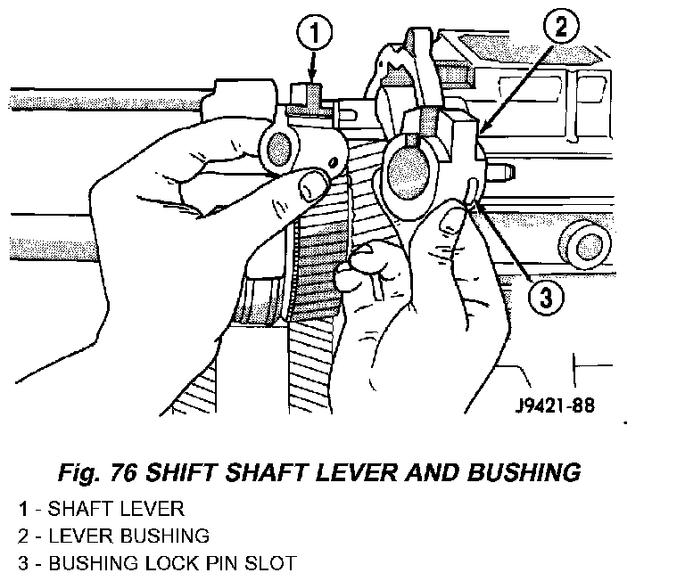 5. Install assembled lever and bushing on shift shaft.