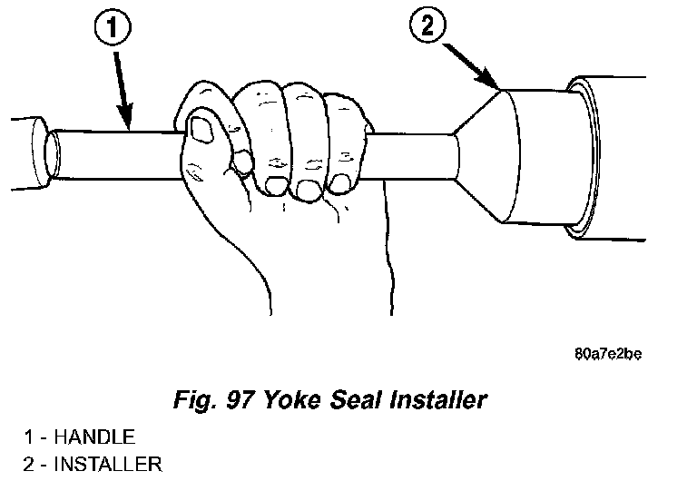 2. Drive new seal into transmission housing with Installer C-3972-A and Handle C-4171.