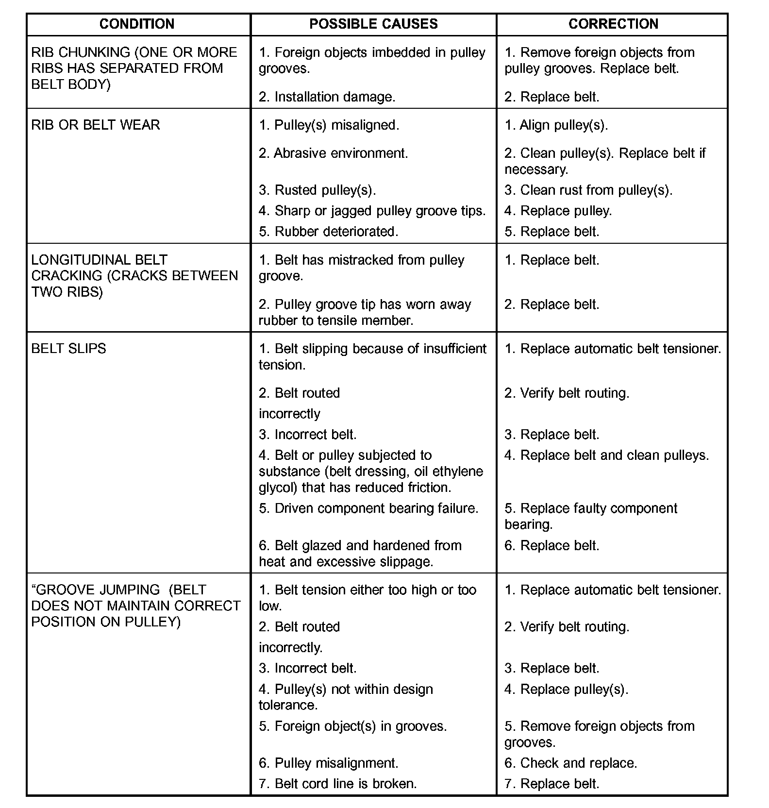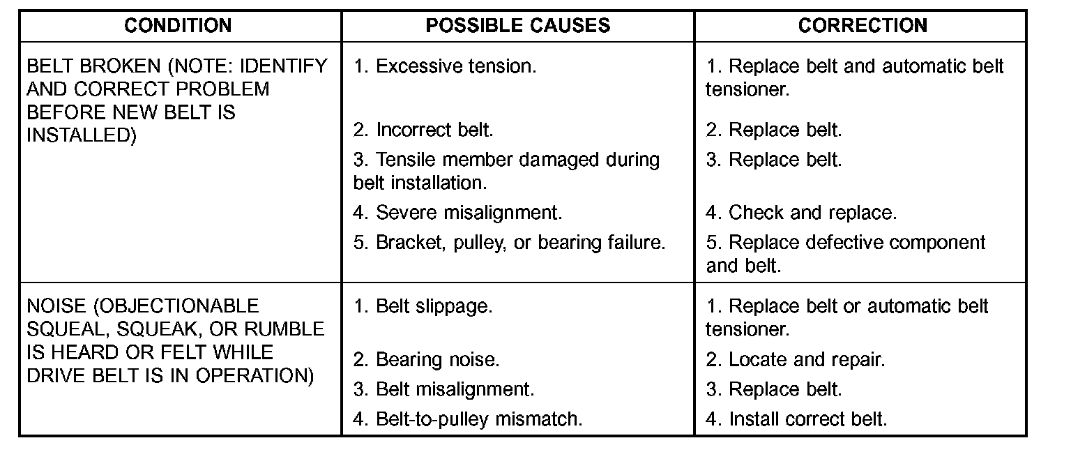 SERPENTINE DRIVE BELT DIAGNOSIS CHART (Part 2 of 2)