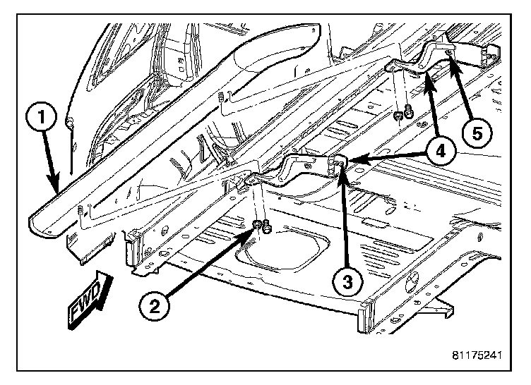 4. Remove frame bracket bolts (2) to frame and remove frame brackets (1).