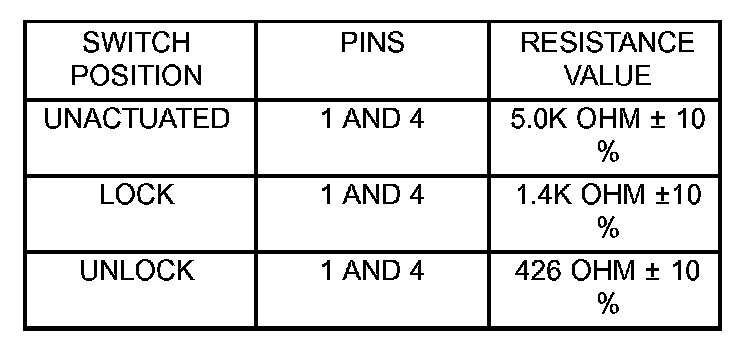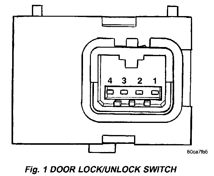 1. Remove the switch to be tested (Refer to POWER LOCKS/POWER LOCK SWITCH - REMOVAL).Fig.1 Door Lock/unlock Switch: