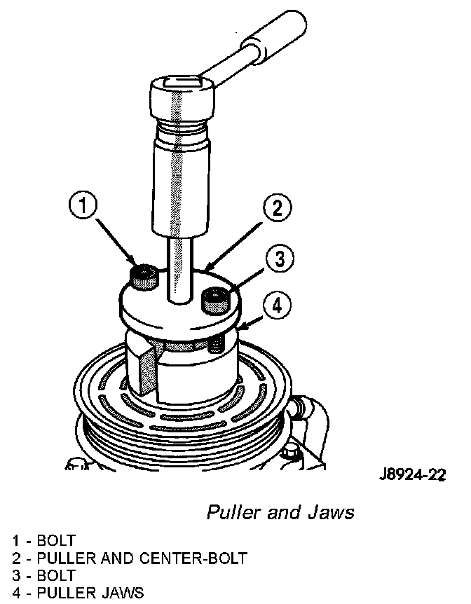 11. Install the bolts for puller (Special Tool 6461 in Kit 6460) through the puller flange and into the puller jaws. Tighten the bolts securely.