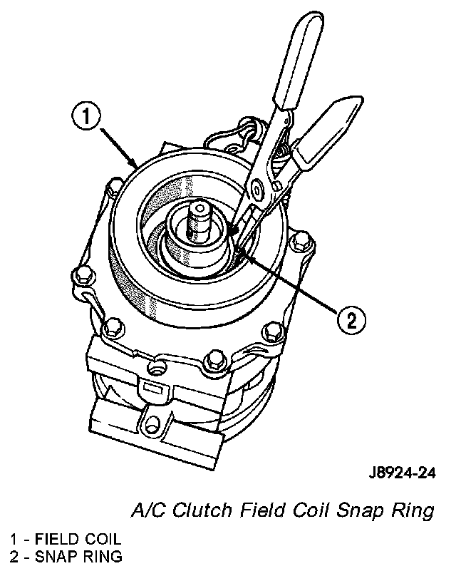 2. Install the snap ring that secures the clutch field coil to the compressor front housing with snap ring pliers.