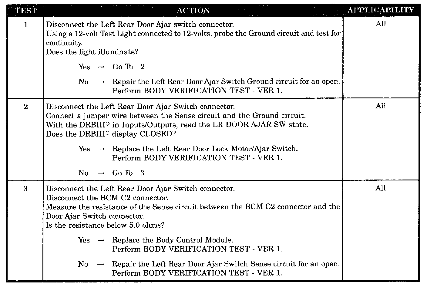 LEFT REAR DOOR AJAR CIRCUIT OPEN