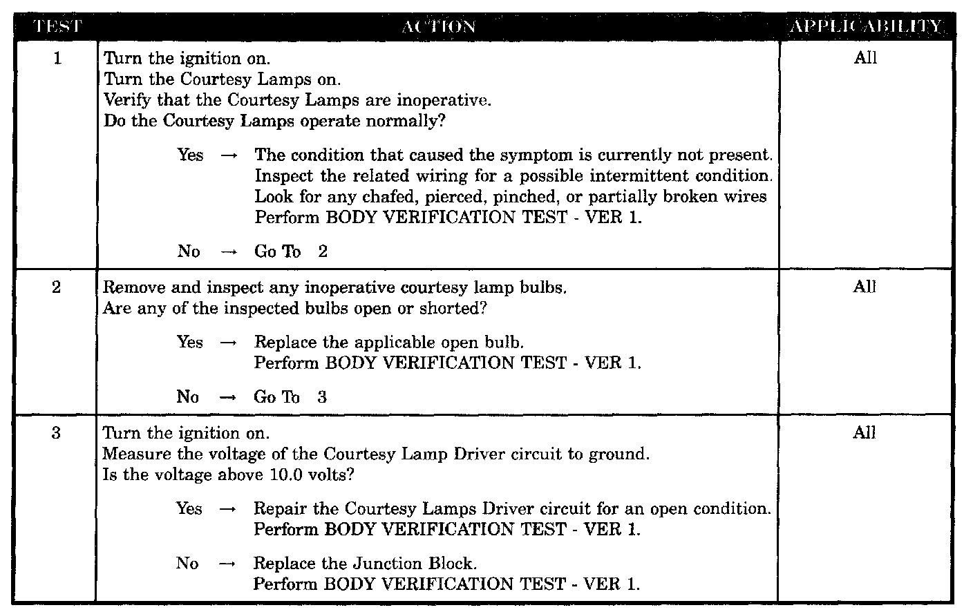 COURTESY LAMPS INOPERATIVE-OVERHEAD LAMPS
