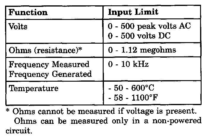 WARNING: EXCEEDING THE LIMITS OF THE DRBIII MULTIMETER IS DANGEROUS. IT CAN EXPOSE YOU TO SERIOUS INJURY.CAREFULLY READ AND UNDERSTAND THE CAUTIONS AND THE SPECIFICATION LIMITS.Follow the vehicle manufacturer's service specifications at all times.