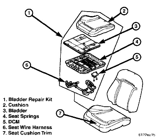 There are only three replaceable components in the OCS, Occupant Classification Module, Bladder Repair Kit and the Passenger Airbag OFF Indicator. The Bladder repair kit contains the OCS bladder; wire harnesses, pressure sensor (Seat Weight Sensor), module, seat cushion and other relate structural and sound deadening components. The module and sensor connector have a Tamper evident material installed on the service kit module and sensor connectors. This material provides visible evidence that the assembly has been separated after the calibration process was completed. Do not install a Bladder Repair Kit if it appears that any of the components have been disconnected.