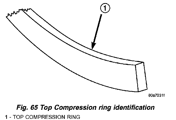 6. The two compression rings are different and cannot be interchanged. The top compression ring can be identified by the shiny coating on the outer sealing surface and can be installed with either side up. (Fig. 65).