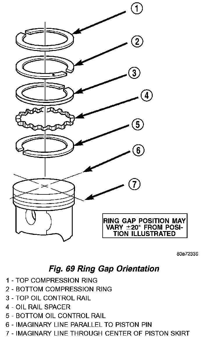 ^ No. 2 Compression ring Gap 180° from top oil rail gap.
