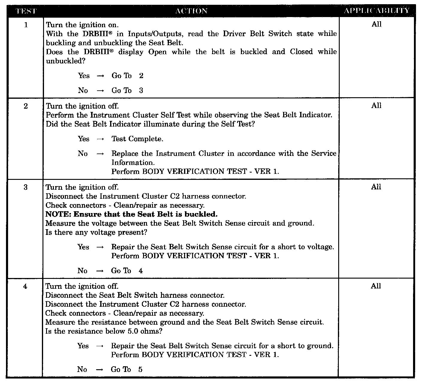 SEAT BELT INDICATOR NOT OPERATING PROPERLY
