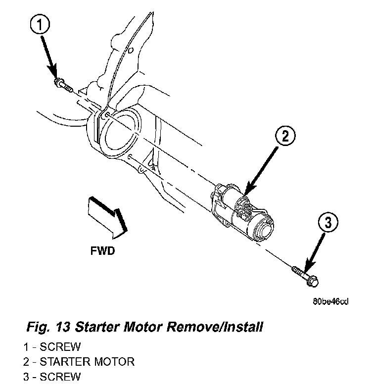 Fig.13 Starter Motor Remove/Install - 4.0L Engine: