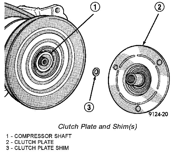 4. Tap the clutch plate with a plastic mallet to release it from the splines on the compressor shaft. Remove the clutch plate and shim(s) from the compressor shaft.