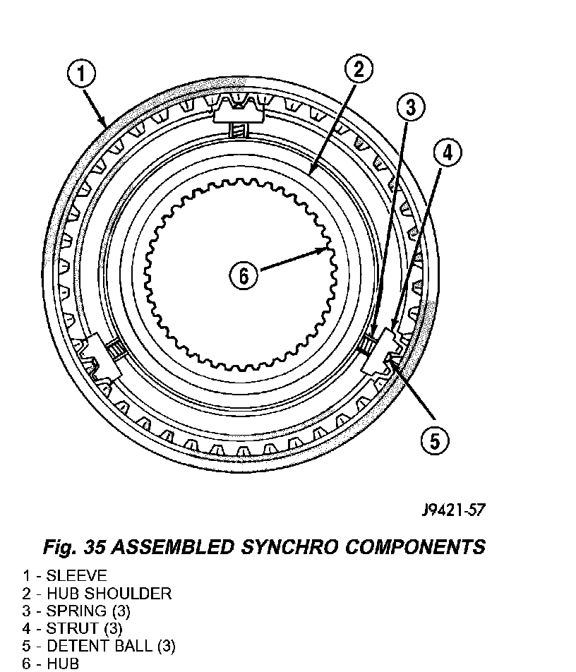 NOTE: The easiest method of assembling each synchro is to install the springs, struts and detent balls one at a time.