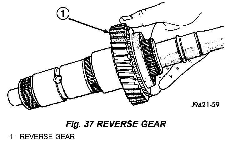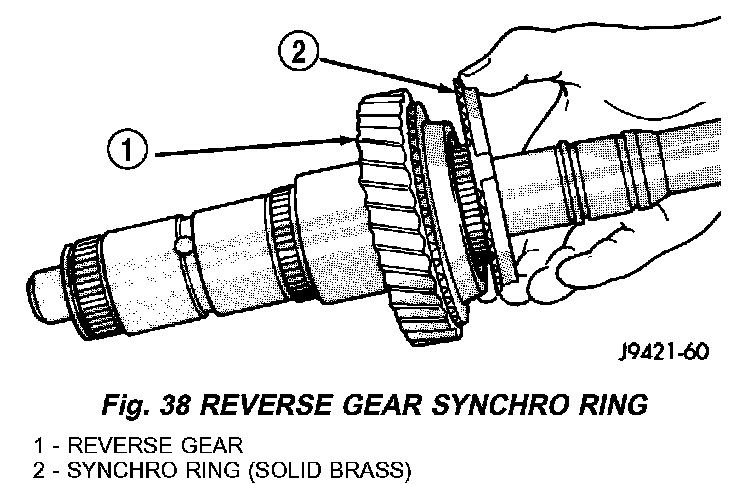 3. Install solid brass synchro ring on reverse gear (Fig. 38).