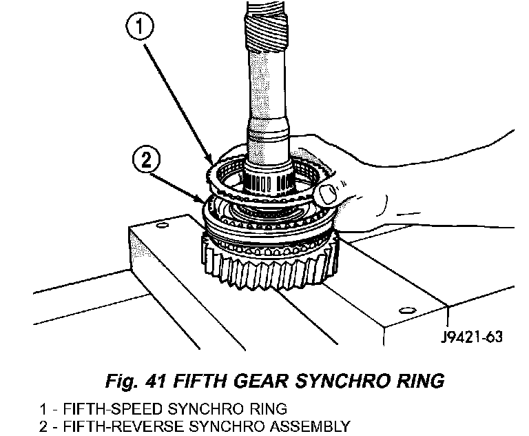 6. Install fifth gear synchro ring in synchro hub and sleeve (Fig. 41).