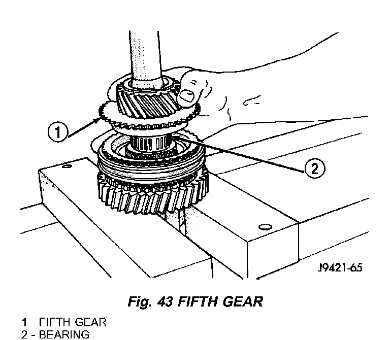8. Install fifth gear on shaft and onto bearing (Fig. 43).