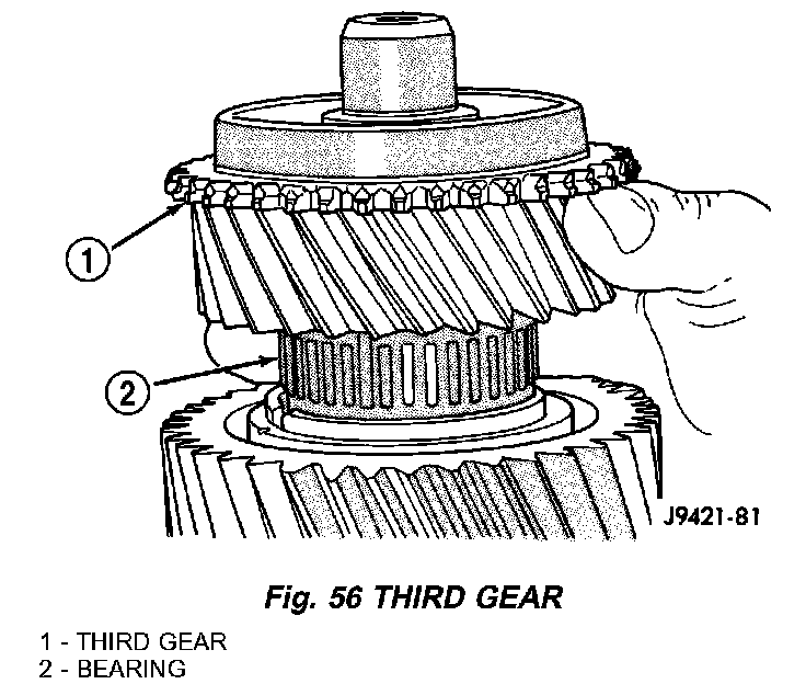 25. Install third gear needle bearing on shaft (Fig. 55).