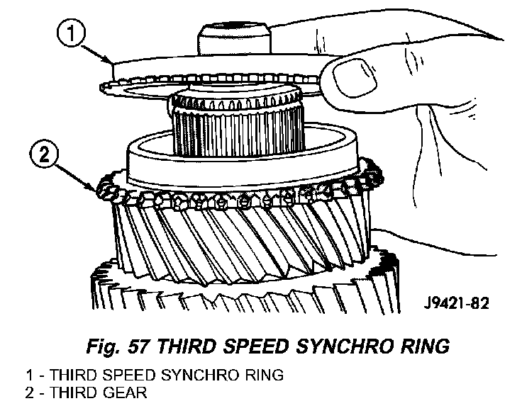27. Install third speed synchro ring on third gear (Fig. 57).