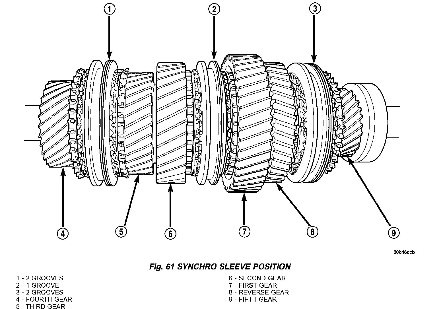 31. Verify position of synchro sleeves before proceeding (Fig. 61).