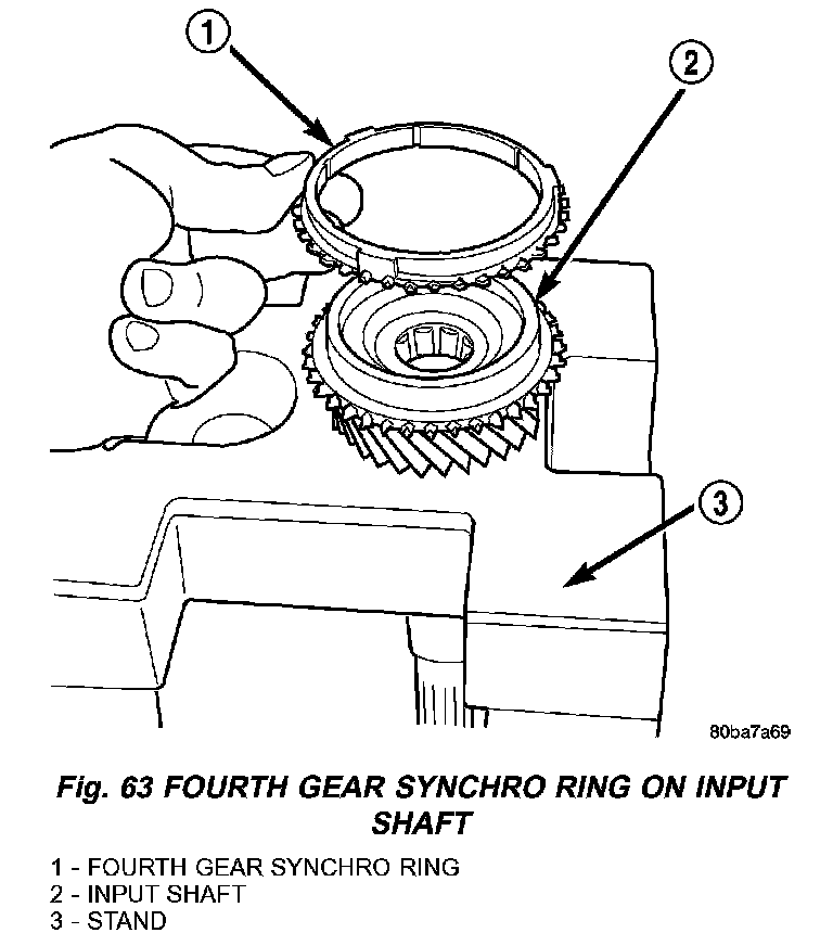 3. Install fourth gear synchro ring on input shaft (Fig. 63).