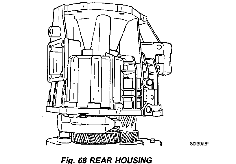 2. Install rear housing onto geartrain (Fig. 68). Verify bearing retainer pilot stud is in correct bolt hole and countershaft and output shaft bearings are aligned in housing and on countershaft.