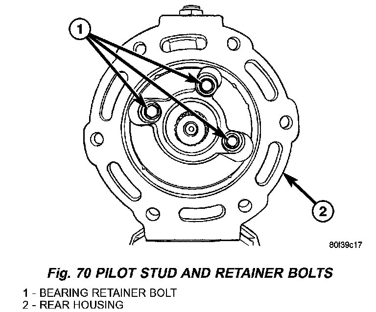 5. Start first two bolts in retainer (Fig. 70). It may be necessary to move retainer rearward (with pilot stud) in order to start bolts.
