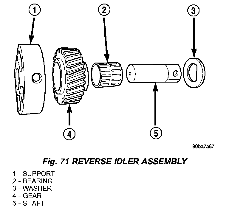 NOTE: The small shoulder on the reverse idler gear goes toward the front of the transmission.