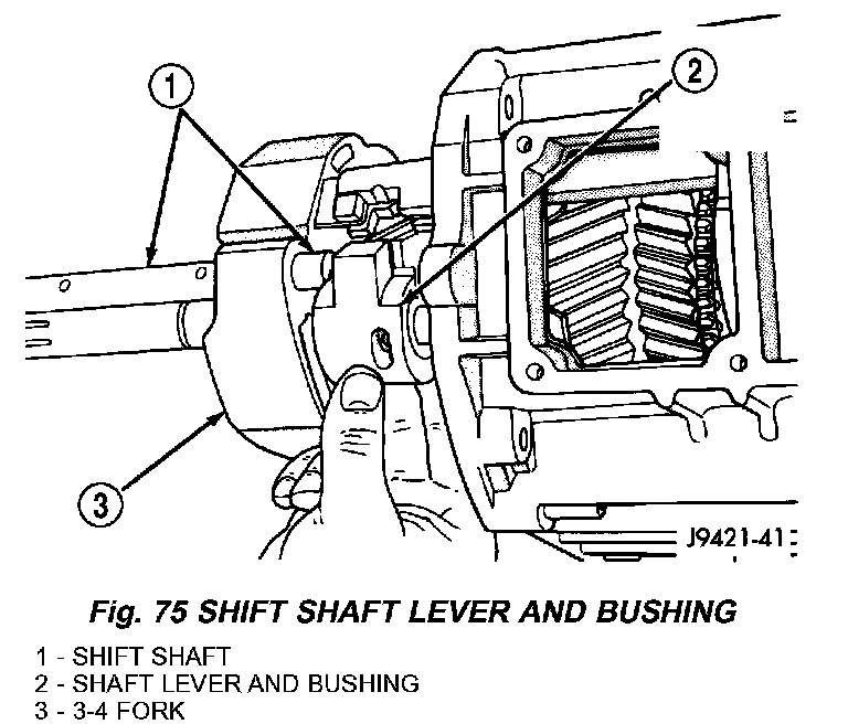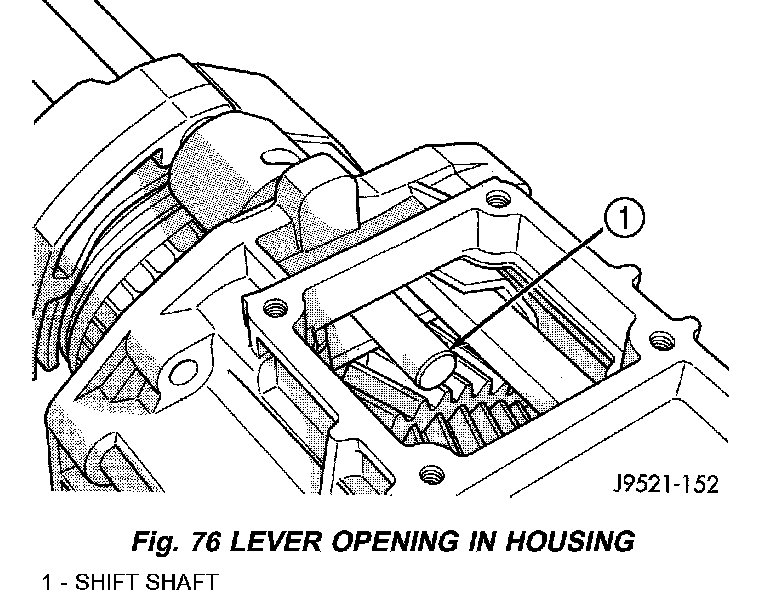 5. Install assembled lever and bushing on shift shaft (Fig. 75).