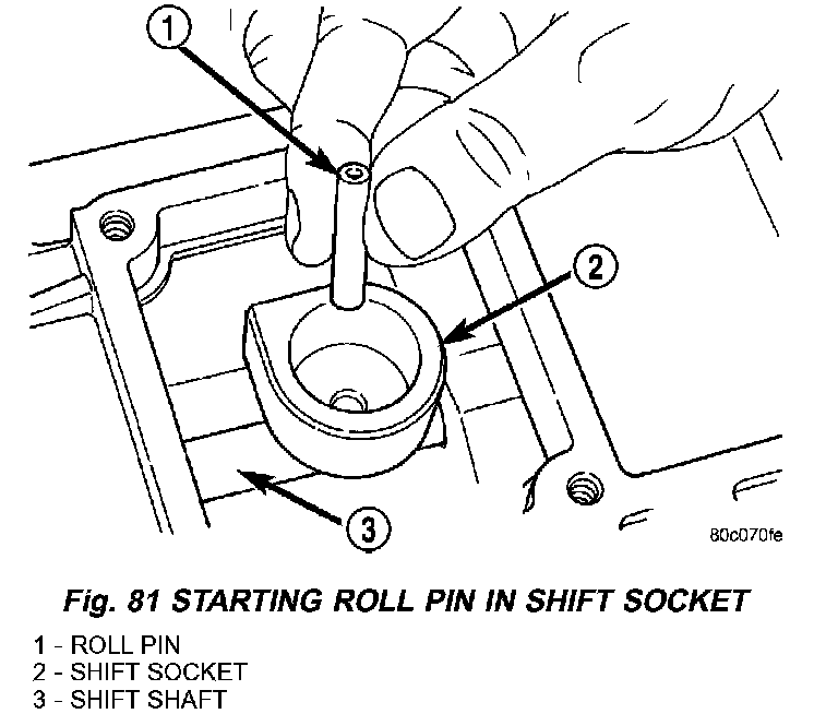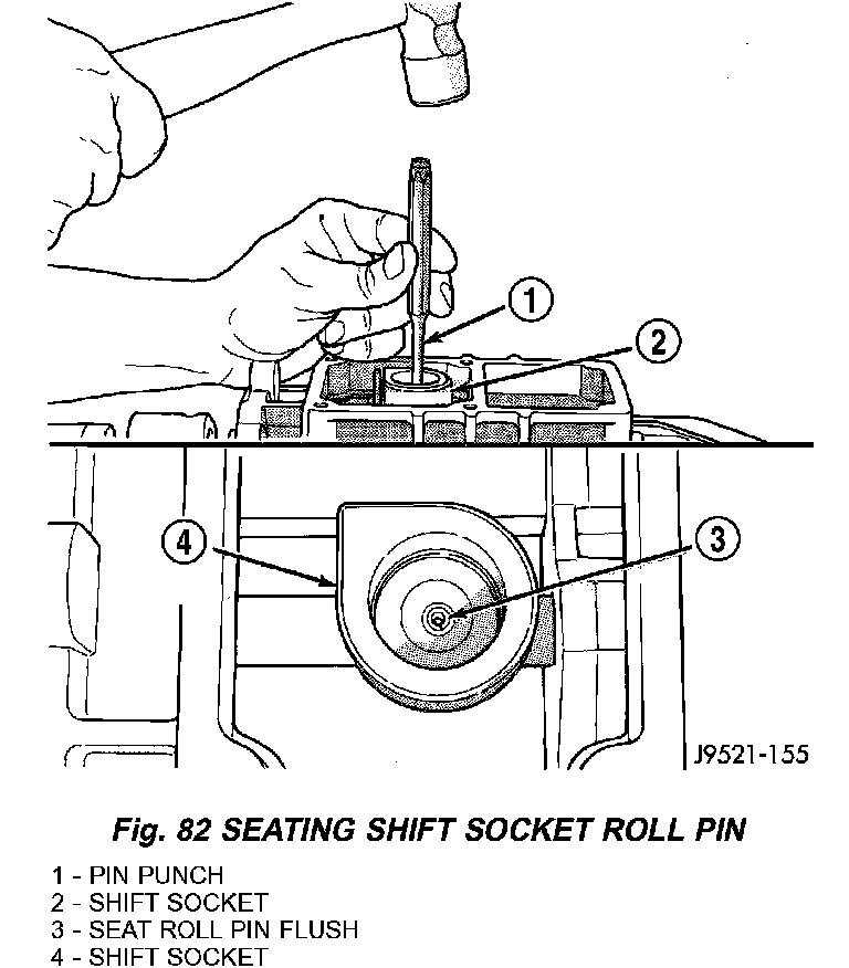 14. Seat roll pin in shift socket with pin punch. Roll pin must be installed flush with socket (Fig. 82).