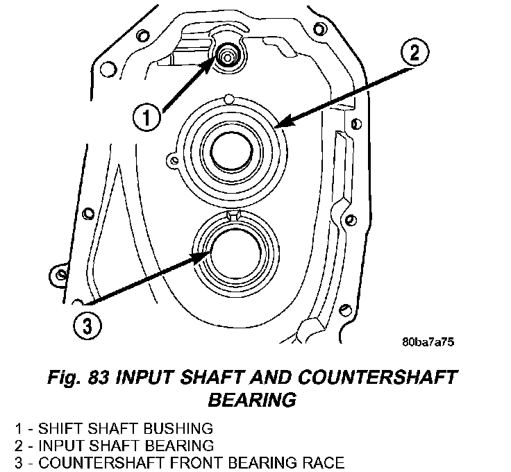 1. If previously removed, install input shaft bearing in front housing bore (Fig. 83). Install snap ring and use plastic mallet to seat bearing. Bearing goes in from front side of housing only