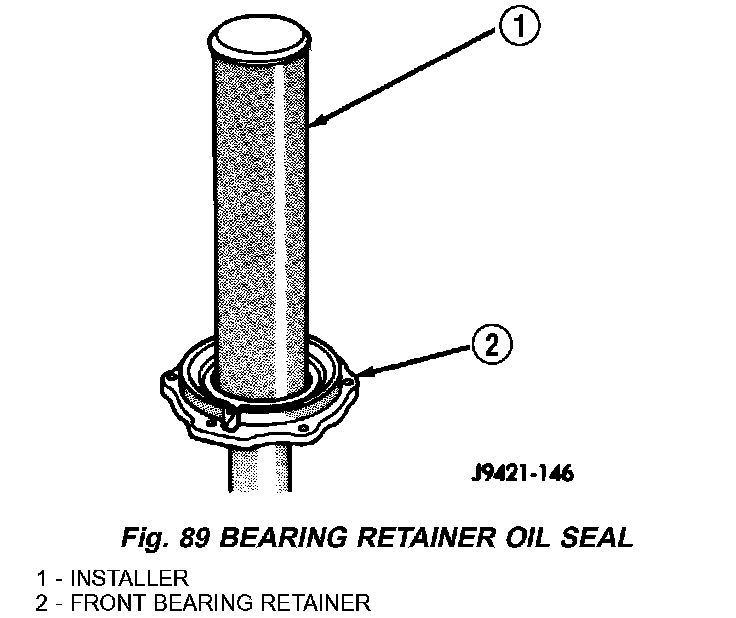 16. Install new oil seal in front bearing retainer with Installer 6448 (Fig. 89).