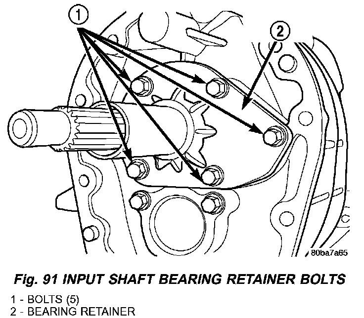 19. Install and tighten bearing retainer bolts to 29 Nm (21.4 ft. lbs.) (Fig. 91).