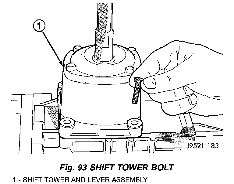 4. Install shift tower bolts (Fig. 93) and tighten bolts to 8.5 Nm (75.2 in. lbs.).