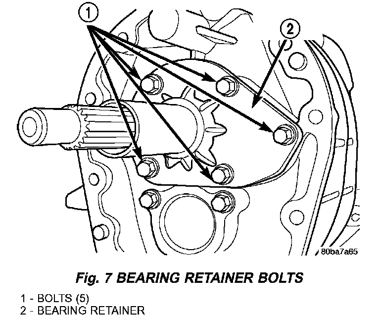 8. Remove input shaft bearing retainer bolts (Fig. 7).