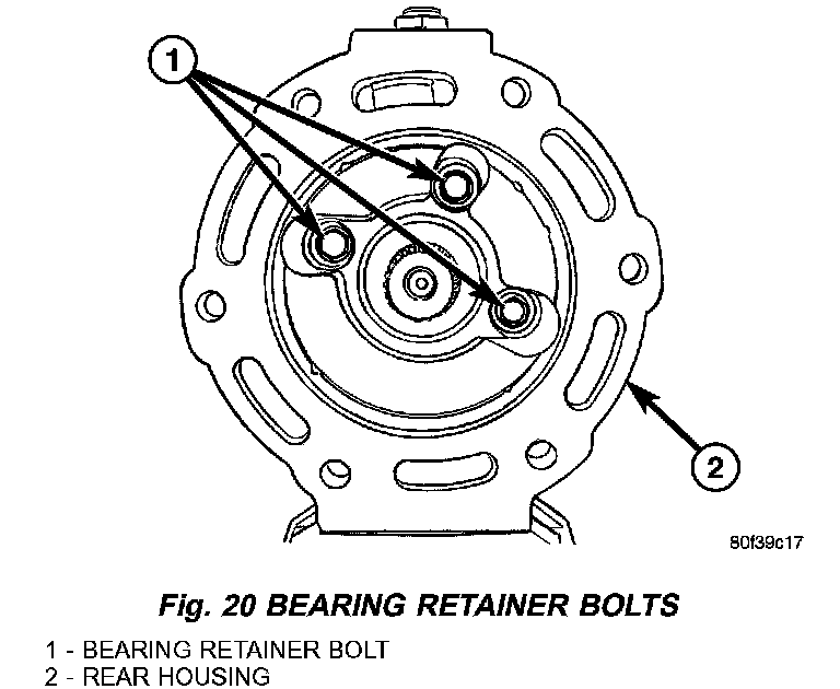 1. Remove output shaft bearing retainer bolts (Fig. 20).