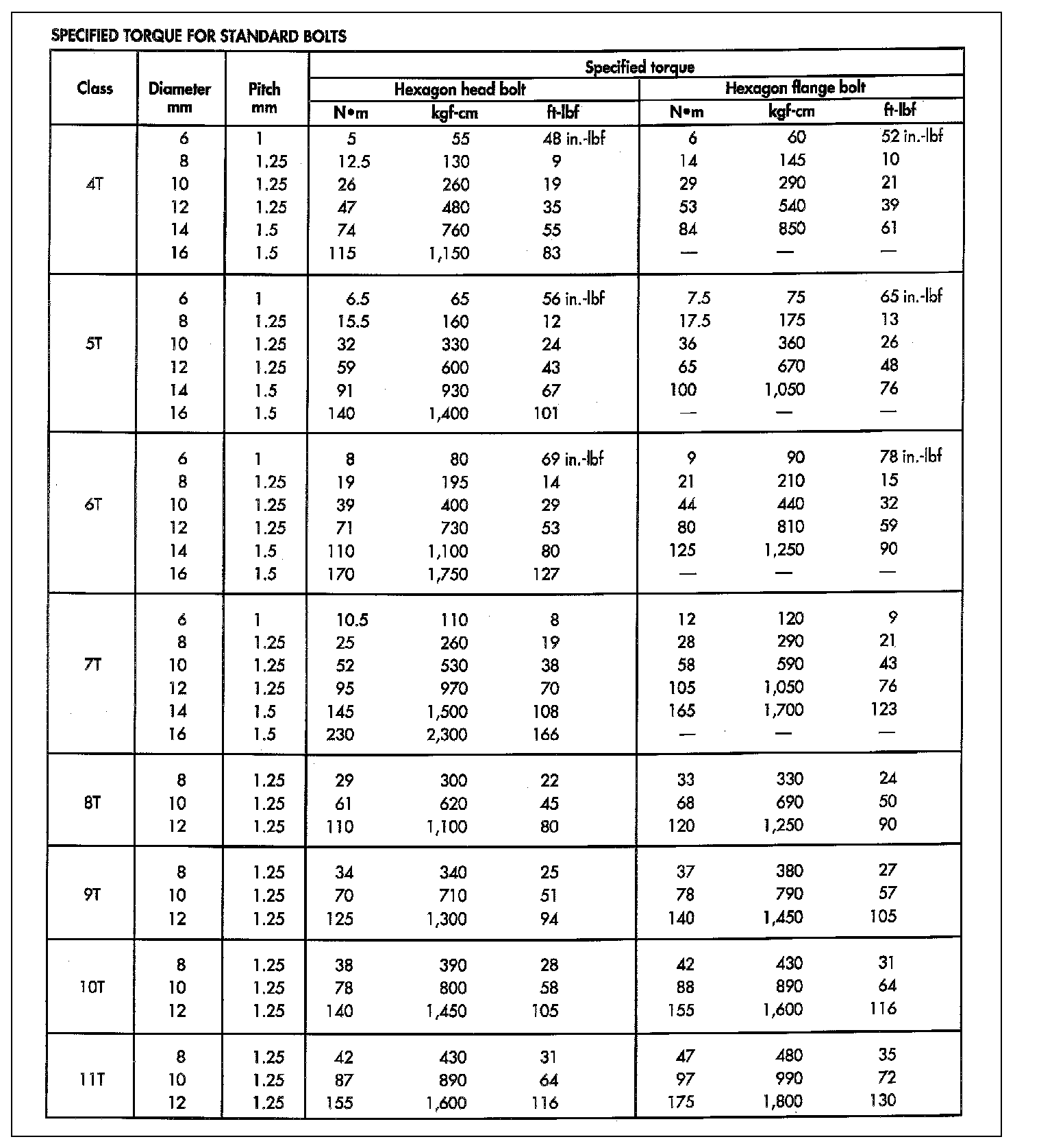 Individual Torque Charts appear within many of the Groups. Refer to the Standard Torque Specifications Chart for torque references not listed in the individual torque charts.