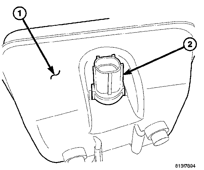 1. Remove the wire connector from the fluid level sensor (2).