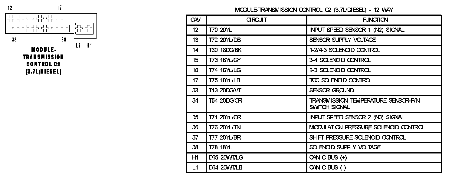 Module Transmission Control C2 (3.7L/diesel):