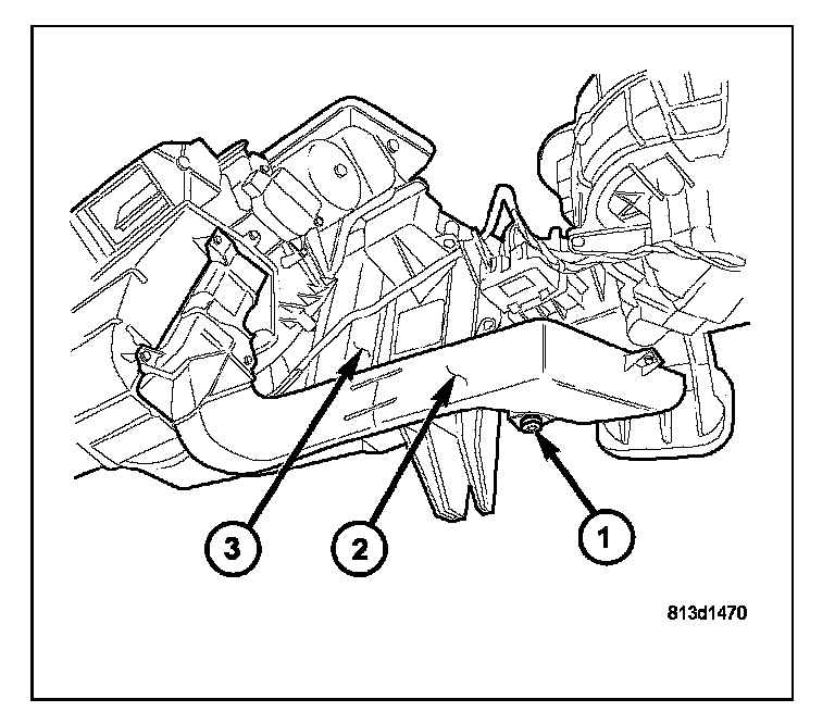 8. If equipped with dual zone heating-A/C, install the blend door actuator (1) onto the passenger side of the HVAC air distribution housing. Service and Repair