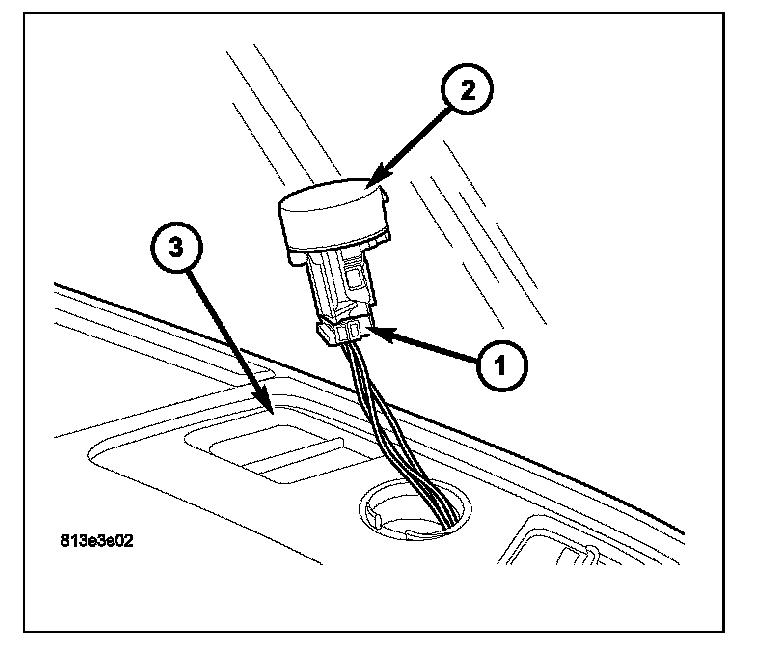 3. Carefully pull the sun sensor (1) partially out of the instrument panel (2) and disconnect the wire harness connector (3) from the sensor.