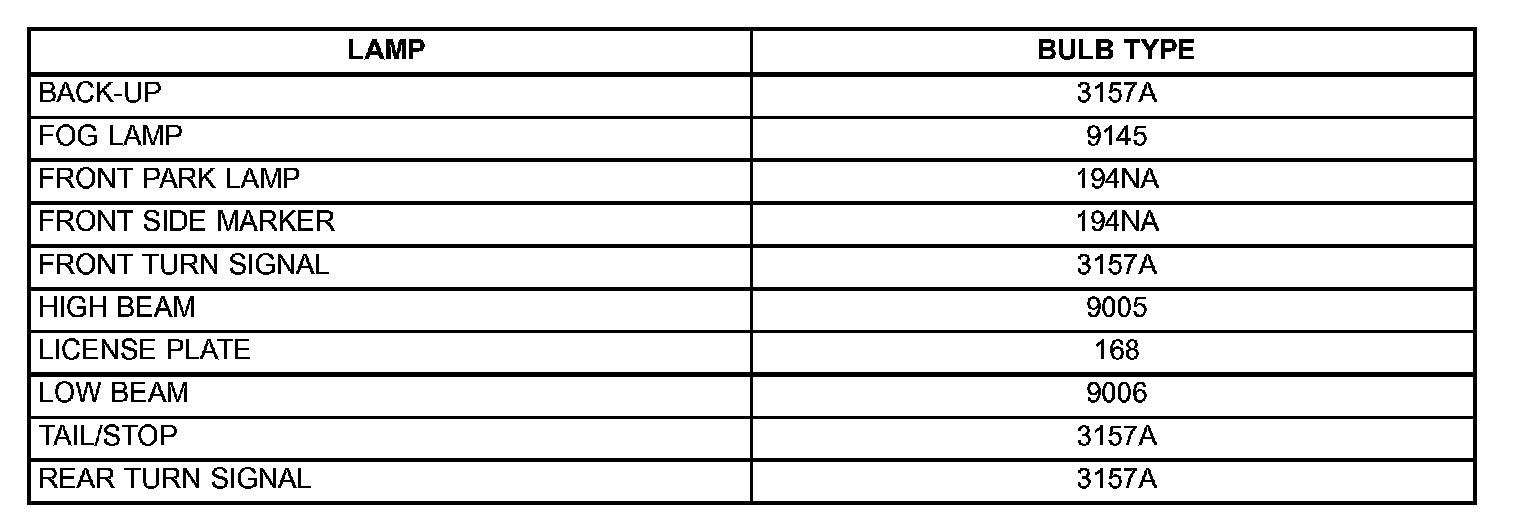 CAUTION: Do not use bulbs other than the bulbs listed in the Bulb Application Table. Damage to lamp can result. Do not touch halogen bulbs with fingers or other oily surfaces. Bulb life will be reduced.